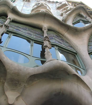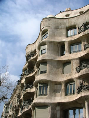 Just up the block and on the other side of the street stands another famous Gaudi structure, La Pedrera. Originally an apartment / office building, it now holds a collection of the architect's work. The outside is wavy and features elaborate, serpentine wrought-iron balconies.
