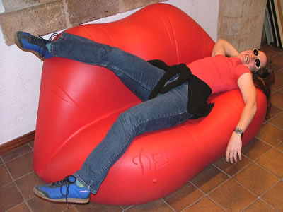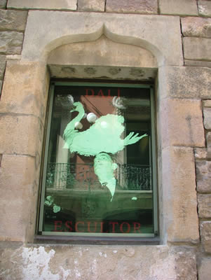 There really wasn't enough time to take everything in. I can't even remember all the places we visited. We walked past a Picasso museum, I hammed it up on a giant mouth-shaped sofa in the lobby of the Dali sculpture museum, we bought Gaudi postcards at a tienda in a narrow cobblestone alley, went to the bathroom in the dirty basement of Pan & Co., had a zumo de naranja y mango in a cafe where lamps in the shape of flies of some kind (with eyes made of tea strainers) hung from the ceiling....