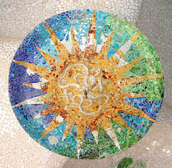 A bus took us in the direction of Gaudi's Parc Güell. I was reminded of an amusement park at the entrance gates, which were flanked by whimsical, gingerbread house-like buildings. Walking up the stairs, a feline-headed fountain greeted us, followed a few metres later by a lizard, all decorated in mozaic. Among the various constructions in the park is the Sala Hipostila, which features 86 columns and a ceiling decorated in beautiful mosaics made with pieces of glass, bottles, dinnerware and other 'rubble.'