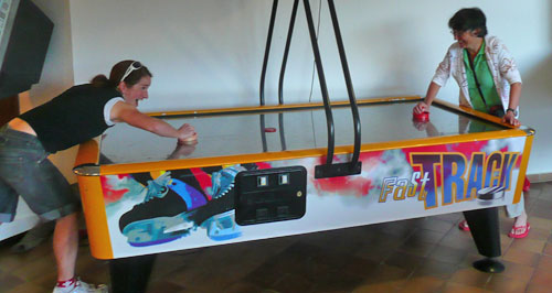 Me and my Mom playing a wicked game of air hockey. My Mom makes a formidable opponent.
