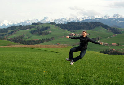 Heinz, Marlena, Me, Mical, Christina and Beat in the barn at the Aebischer family farm.