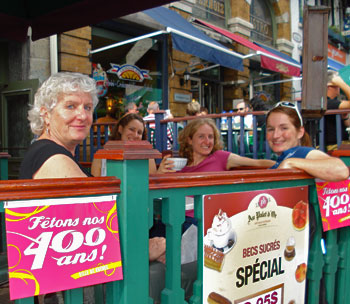 Johanna, Jean Ann, Kika and I, enjoying a downtown Quebec cafe. Jeanine took the photo.