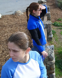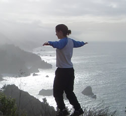 (L) Jeanine and I check out the 360 view along the Pacific Coast Highway, (R) Jeanine walkin' on air.