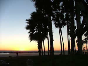 The sun sets on Venice Beach.