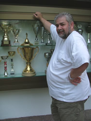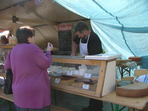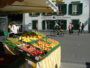 Last Thursday evening, Sonya, Daniela and I drove to Zurich (1.5 hours) just to go for dinner. We went to the Cafe Terrasse -- the fancy restaurant where Daniela did part of her chef's school practicum. Oh man, was it ever good. To start I had a summer salad with avacado and chanterelles. My main was grilled Scottish salmon on a bed of baby bok choy in a tomato-chili sauce. The dessert was the highlight, however. Imagine a silver platter with six fabulous homemade desserts: Creme brulee with apricots, chocolate torte, coupe cafe glacee, frozen yogurt with fruit salad, strawberry sorbet with vodka, panna cotta with fresh berries and tiramisu wrapped in white chocolate. WOW!