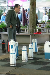 Martina and I rode to Bern the other week to watch the end of the final stage of the Tour de Suisse. It was a 30.7-kilometre TT that ended on cobblestones. We were situated by the finish and had a good view of the riders as they powered over the line. We also had a fantastic perch, which was ideal for people-watching. The Euro bike fans were out in full force, banging on the boards and hanging over the railings holding their glasses of white wine and/or beer. Glasses, not plastic cups. Only the best! Big Jan Ullrich won the TT and the overall tour. Go Jan go! Martina and I also picked up a bunch of free Tour de Suisse paraphernalia and other swag: 1 Minipic pepperoni stick, 1 Tour de Suisse ball cap, 1 Blick ball cap, 1 plush animal key chain, 1 Tour de Suisse T-shirt, 1 Tour de Suisse lanyard with whistle, 1 flourescent orange bag with which to carry it all.