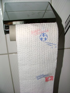 Although I've never followed soccer before, I have suddenly become a big fan. Yes, I have shamelessly jumped on the World Cup Soccer bandwagon! I figure I might as well make the most of my European experience by cheering along with the rest of them. I even wipe with "Hopp Schwiiz! Allez Suisse! Forza Svizzera!" toilet paper!