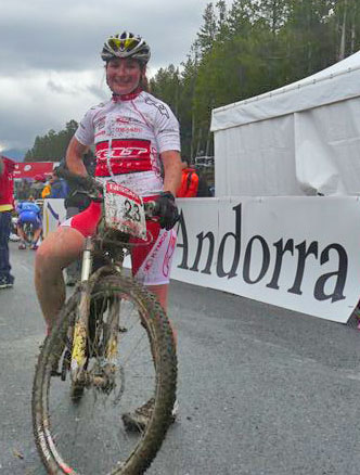 The course in Andorra was a new one on the World Cup circuit, and it was a good one! I felt my training camp in Italy had prepared me well for the effects of altitude on my body. The course started at over 1800m and climbed to around 2000m. About half of the climbing took place on grassy, steep ski runs, but the other half was on rooty, rocky singletrack, which made the elevation gain more interesting and technical. The downhills were also fun. With lots of rocks, berms and roots, it reminded me of Whistler.