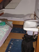 (L) The parking garage I had to back out of in Reinach b/c it was closed! (M) Me driving on the German Autobahn! (R) Our hotel room.