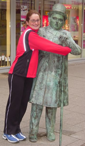 (L) Martina hanging out with a bird in downtown Offenburg (R) A dapper gent hanging out with a happenin' bird in downtown Offenburg.