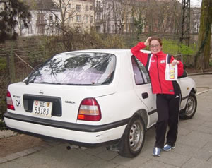 Me and Sunny (the car) outside our hotel in Offenburg.