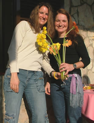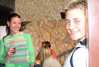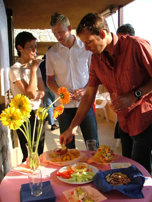 (L-R, Top to Bottom: Michaela, Buetzi and Dominick digging in; Natascha and I, all smiles; Two of #815's fair guests (Andrea, our great new roomie is on the right); The boys of #815: Roger, Dominick and Buetzi -- nice work, guys!