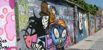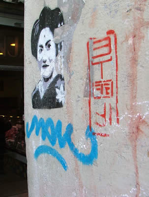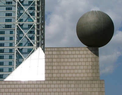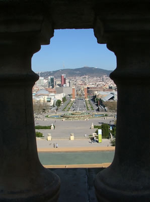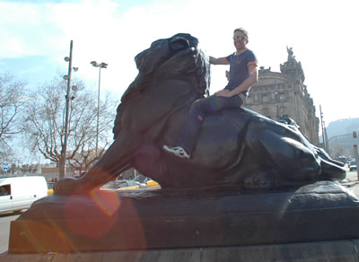 (Top to Bottom; L-R) Asian grafitti in an alley; Barcelona bike path (complete with pigeon); The boys (Dani G, Andreas, Franz, Jonas) looking cool (or hot, depending on which way you look at it); cherry blossoms; Dani S -- rrrrrrow!; an example of extremely geometric architecture; Placa de Espanya (I think); Oh holy bikes; I love eggs!; More cool grafitti; More cool people (Jonas, Sandra, Jan); The fountain across from the lobby of the Hotel Arts Barcelona with Gehry's Peix sculpture in the background; Pavello Mies van der Rohe.