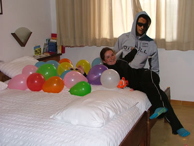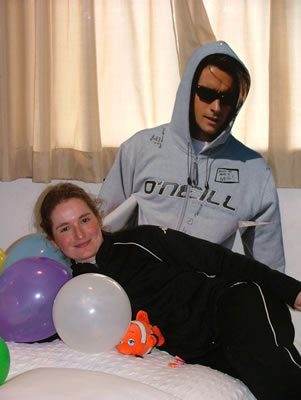 Me enjoying my family fantasy cocktail for two and my company, Dominick and Rogi; Me, Neill, Nemo and my Birthday Bed!