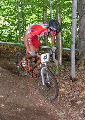 I had a very fast start and was motivated to keep it up, but I got edged out going into the singletrack and was stuck behind a particularly weak technical rider. She fumbled the first tricky descent and I rammed into her and went down as well. That's where things started to get difficult. I got stuck trying to chase riders down, which is difficult when the pace at the front is so high. The biggest factor that led my feeling of dissatisfaction with the race, was how the heat affected me. Unlike at the National Championships where I felt I thrived (or at least didn't suffer excessively) in the heat, I really had a hard time with it during the World Cup. Whenever I came out onto a climb exposed to the sun, I felt like I was going to explode. I just did my best and pushed as hard as I could without passing out. I guess the heat fried some brain cells, as I wasn't riding the normally easy technical sections very well and I kept fumbling. On the third lap, my chain came off the top and somehow got wedged and I lost around a minute trying to fix it. By that time, I had lost too much time to leaders and was pulled out at the end of the third lap. It was still a very good learning experience and it was still fun. The best part was, I got to see Marie-Helene Premont (QC, Rocky Mountain-Business Objects) WIN! I'm so excited for her! She's an inspiration.
